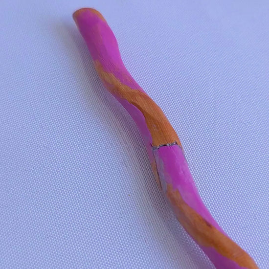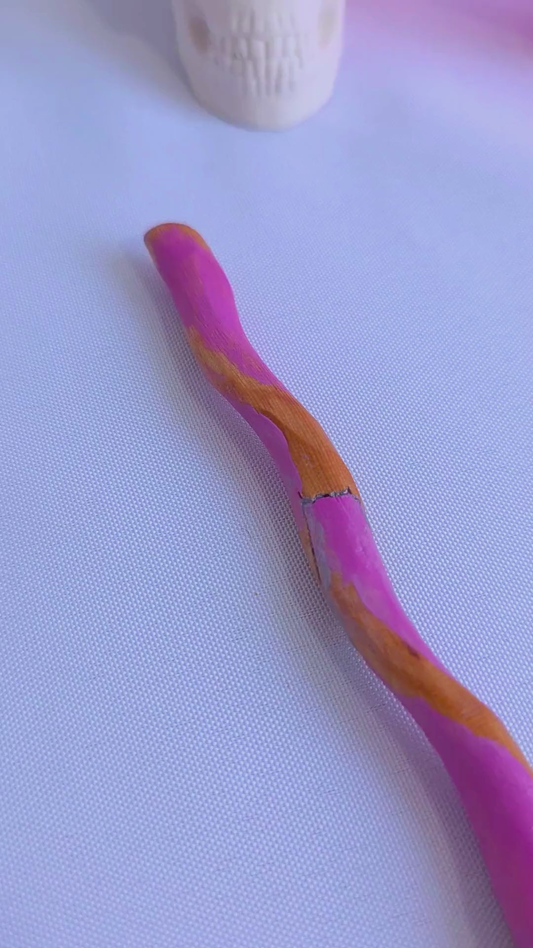 Shaped from wood and painted by hand, this wand does not aim for perfection or symmetry. The break occurred during making, and the choice was made to repair it rather than discard it. The result is a wand that feels lived-in, altered by circumstance, and finished with care rather than correction.