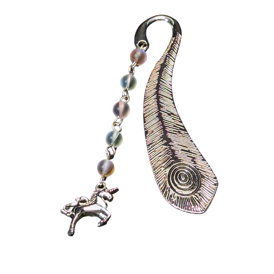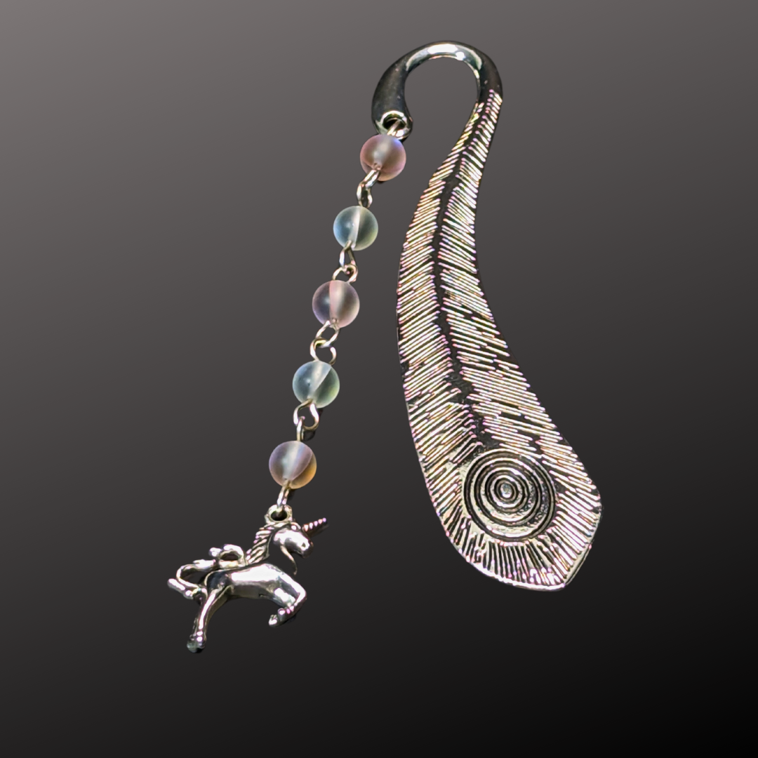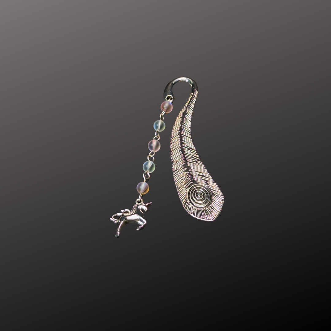 The bookmark features a charming unicorn charm, symbolizing purity and grace, making it a delightful companion for those who revel in the whimsical and the fantastical in their reading adventures.